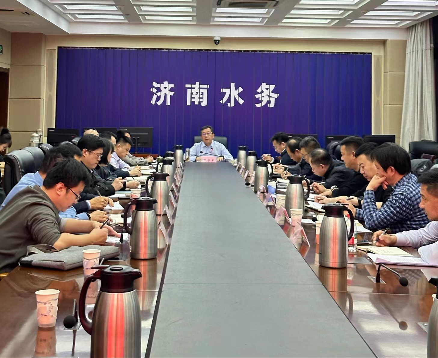 会议由市水务局党组副书记、副局长亓子明主持,市水务局党组书记、局长王学军出席会议并讲话。